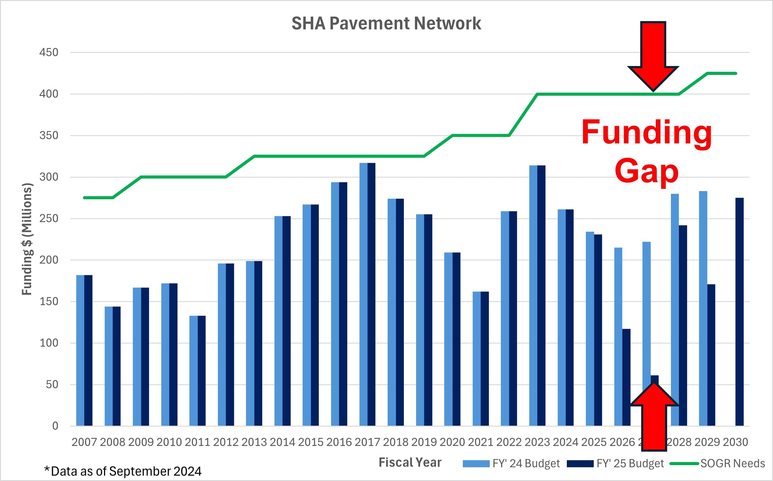 Graph: Maryland State Highway Administration Funding Gap