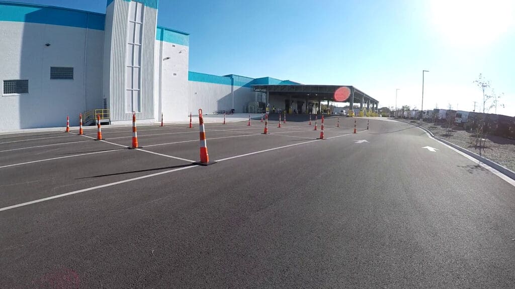 This project consisted of 59,219 SY – 4,732T 19 mm L2 PG 64S-22, and 4,589T 9.5 mm LS PG 64S-22 at the new Amazon DMD5 distribution center. It was completed in two phases and five subphases. It featured great uniformity, clean work in a closed section, and nice tie-ins.