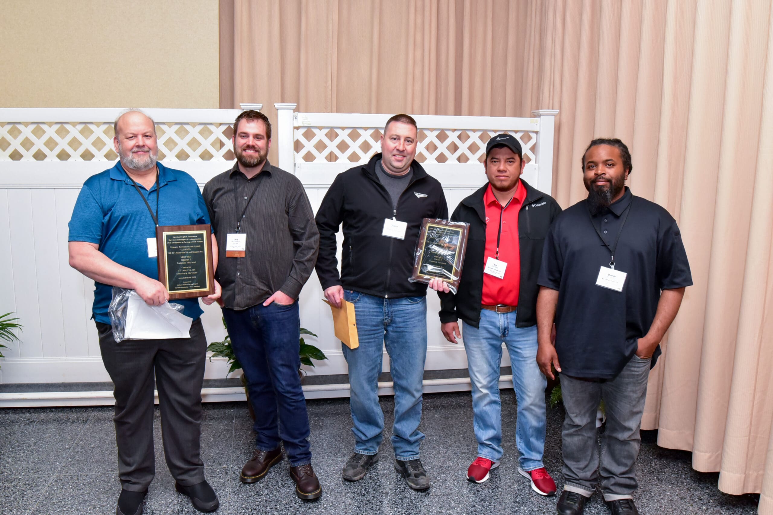 Back Row, from Left: Mike Brown (EBA Engineering), Mike Little (SHA District 3), Muhammad Jamal Uddin (EBA Engineering), Rober Ingle (SHA OMT), and Patrick Mauer (SHA OMT)